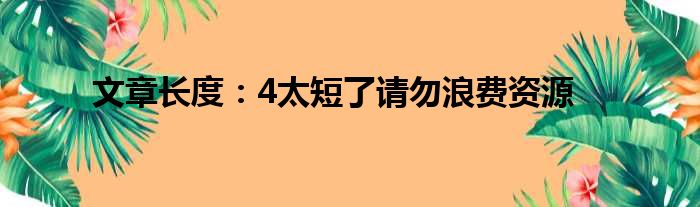 大家好,今天小六子来为大家解答以下的问题,关于文章长度:4太短了请勿浪费资源这个很多人还不知道,现在让我们一起来看看吧!