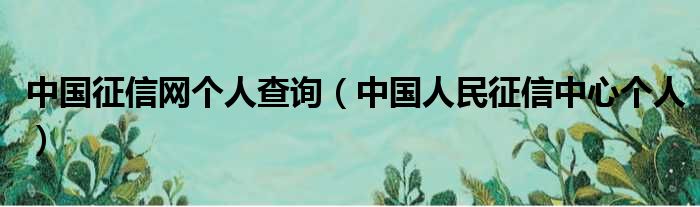 导读 大家好,今天小六子来为大家解答以下的问题,关于中国征信网个人查询,中国人民征信中心个人这个很多人还不知道,现在让我们一起来看看吧!1