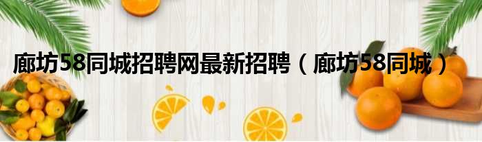 廊坊58同城招聘网最新招聘(廊坊58同城)