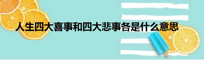 大家好,今天小六子来为大家解答以下的问题,关于人生四大喜事和四大悲事各是什么意思这个很多人还不知道,现在让我们一起来看看吧!