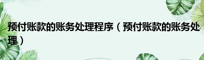 导读 大家好,今天小六子来为大家解答以下的问题,关于预付账款的账务处理程序,预付账款的账务处理这个很多人还不知道,现在让我们一起来看看吧