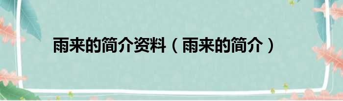 大家好,今天小六子来为大家解答以下的问题,关于雨来的简介资料,雨来的简介这个很多人还不知道,现在让我们一起来看看吧!