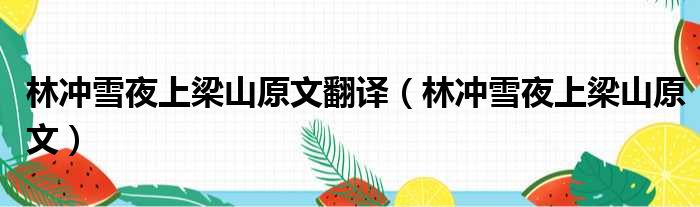 林冲雪夜上梁山原文翻译(林冲雪夜上梁山原文)