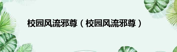 大家好,今天小六子来为大家解答以下的问题,关于校园风流邪尊,校园风流邪尊这个很多人还不知道,现在让我们一起来看看吧!