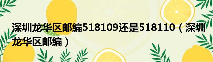 深圳龙华区邮编518109还是518110(深圳龙华区邮编)