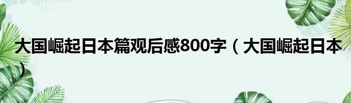 大国崛起日本篇观后感800字(大国崛起日本)