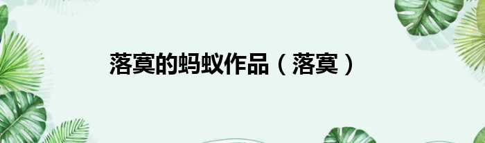 大家好,今天小六子来为大家解答以下的问题,关于落寞的蚂蚁作品,落寞这个很多人还不知道,现在让我们一起来看看吧!
