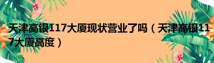 导读 大家好,今天小六子来为大家解答以下的问题,关于天津高银117大厦现状营业了吗,天津高银117大厦高度这个很多人还不知道,现在让我们一起来