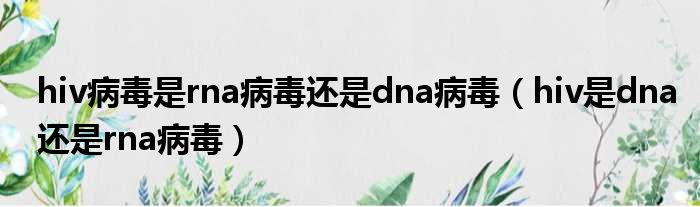 hiv病毒是rna病毒还是dna病毒(hiv是dna还是rna病毒)