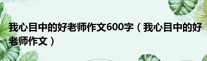 我心目中的好老师作文600字(我心目中的好老师作文)