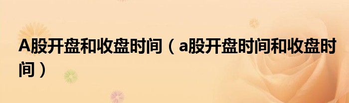 A股开盘和收盘时间(a股开盘时间和收盘时间)