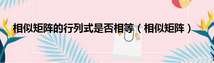导读 大家好,今天小六子来为大家解答以下的问题,关于相似矩阵的行列式是否相等,相似矩阵这个很多人还不知道,现在让我们一起来看看吧!1、矩阵