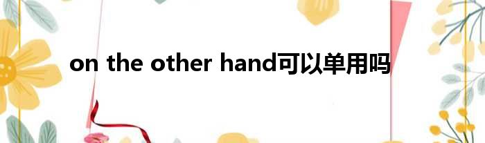 大家好,今天小六子来为大家解答以下的问题,关于on the other hand可以单用吗这个很多人还不知道,现在让我们一起来看看吧!