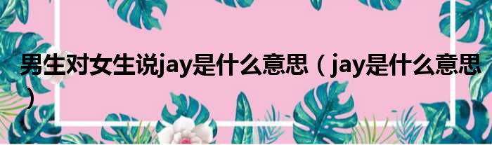 导读 大家好,今天小六子来为大家解答以下的问题,关于男生对女生说jay是什么意思,jay是什么意思这个很多人还不知道,现在让我们一起来看看吧!1