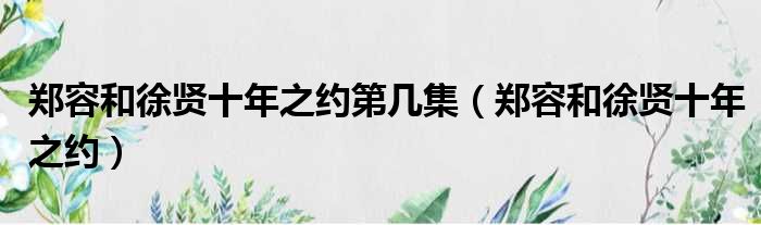 导读 大家好,今天小六子来为大家解答以下的问题,关于郑容和徐贤十年之约第几集,郑容和徐贤十年之约这个很多人还不知道,现在让我们一起来看看