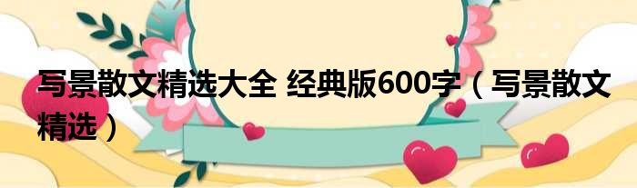 大家好,今天小六子来为大家解答以下的问题,关于写景散文精选大全 经典版600字,写景散文精选这个很多人还不知道,现在让我们一起来看看吧!