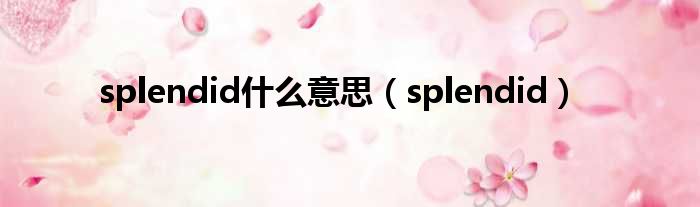 导读 大家好,今天小六子来为大家解答以下的问题,关于splendid什么意思,splendid这个很多人还不知道,现在让我们一起来看看吧!1、splendid 的