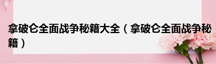 导读 大家好,今天小六子来为大家解答以下的问题,关于拿破仑全面战争秘籍大全,拿破仑全面战争秘籍这个很多人还不知道,现在让我们一起来看看吧