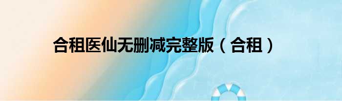 大家好,今天小六子来为大家解答以下的问题,关于合租医仙无删减完整版,合租这个很多人还不知道,现在让我们一起来看看吧!