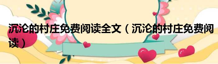 沉沦的村庄免费阅读全文(沉沦的村庄免费阅读)