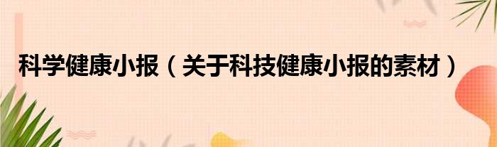 大家好,今天小六子来为大家解答以下的问题,关于科学健康小报,关于科技健康小报的素材这个很多人还不知道,现在让我们一起来看看吧!
