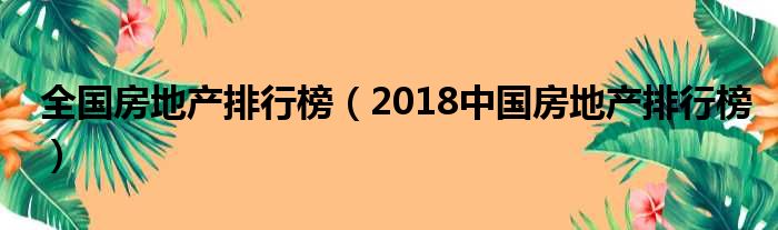 大家好,今天小六子来为大家解答以下的问题,关于全国房地产排行榜,2018中国房地产排行榜这个很多人还不知道,现在让我们一起来看看吧!