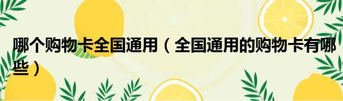 哪个购物卡全国通用(全国通用的购物卡有哪些)