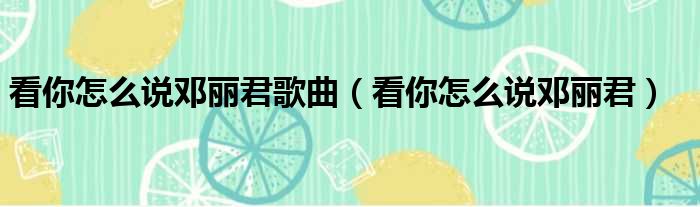 看你怎么说邓丽君歌曲(看你怎么说邓丽君)