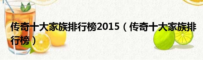 传奇十大家族排行榜2015(传奇十大家族排行榜)