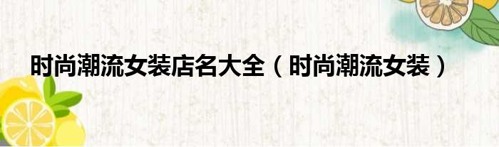 导读 大家好,今天小六子来为大家解答以下的问题,关于时尚潮流女装店名大全,时尚潮流女装这个很多人还不知道,现在让我们一起来看看吧!1、推荐