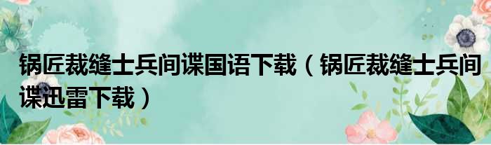 导读 大家好,今天小六子来为大家解答以下的问题,关于锅匠裁缝士兵间谍国语下载,锅匠裁缝士兵间谍迅雷下载这个很多人还不知道,现在让我们一起