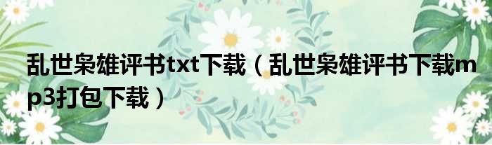乱世枭雄评书txt下载(乱世枭雄评书下载mp3打包下载)