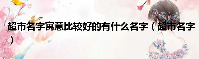 导读 大家好,今天小六子来为大家解答以下的问题,关于超市名字寓意比较好的有什么名字,超市名字这个很多人还不知道,现在让我们一起来看看吧!1
