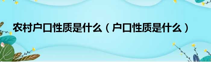 大家好,今天小六子来为大家解答以下的问题,关于农村户口性质是什么,户口性质是什么这个很多人还不知道,现在让我们一起来看看吧!
