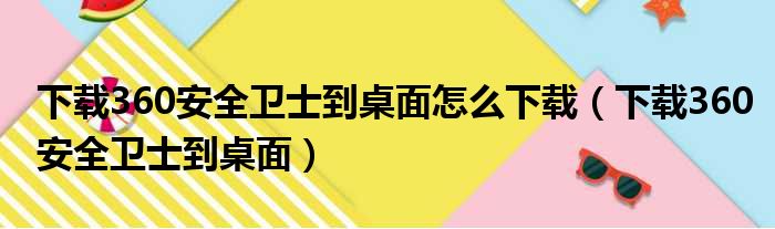 下载360安全卫士到桌面怎么下载(下载360安全卫士到桌面)