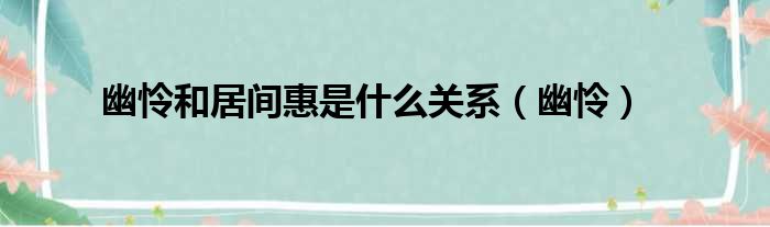 大家好,今天小六子来为大家解答以下的问题,关于幽怜和居间惠是什么关系,幽怜这个很多人还不知道,现在让我们一起来看看吧!