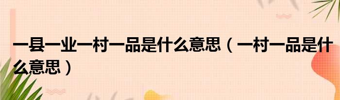 一县一业一村一品是什么意思(一村一品是什么意思)