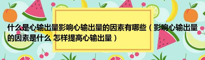 什么是心输出量影响心输出量的因素有哪些(影响心输出量的因素是什么 怎样提高心输出量)