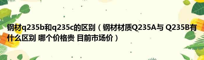 导读 大家好,今天小六子来为大家解答以下的问题,关于钢材q235b和q235c的区别,钢材材质Q235A与 Q235B有什么区别 哪个价格贵 目前市场价这个