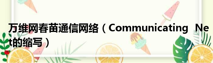 导读 大家好,今天小六子来为大家解答以下的问题,关于万维网春苗通信网络,Communicating Net的缩写这个很多人还不知道,现在让我们一起来看