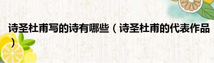 诗圣杜甫写的诗有哪些(诗圣杜甫的代表作品)