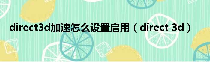 导读 大家好,今天小六子来为大家解答以下的问题,关于direct3d加速怎么设置启用,direct 3d这个很多人还不知道,现在让我们一起来看看吧!1、显