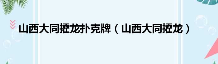 大家好,今天小六子来为大家解答以下的问题,关于山西大同攉龙扑克牌,山西大同攉龙这个很多人还不知道,现在让我们一起来看看吧!