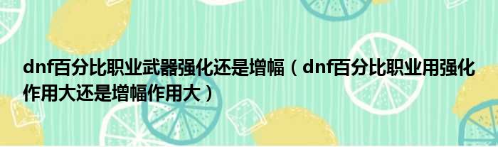 dnf百分比职业武器强化还是增幅(dnf百分比职业用强化作用大还是增幅作用大)