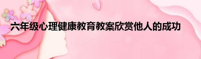 大家好,今天小六子来为大家解答以下的问题,关于六年级心理健康教育教案欣赏他人的成功这个很多人还不知道,现在让我们一起来看看吧!