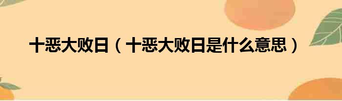 导读 大家好,今天小六子来为大家解答以下的问题,关于十恶大败日,十恶大败日是什么意思这个很多人还不知道,现在让我们一起来看看吧!1、十恶大