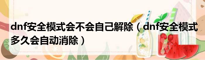 dnf安全模式会不会自己解除(dnf安全模式多久会自动消除)