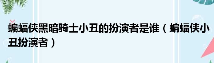 蝙蝠侠黑暗骑士小丑的扮演者是谁(蝙蝠侠小丑扮演者)