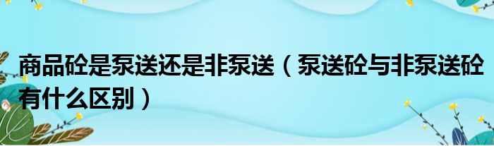 导读 大家好,今天小六子来为大家解答以下的问题,关于商品砼是泵送还是非泵送,泵送砼与非泵送砼有什么区别这个很多人还不知道,现在让我们一起