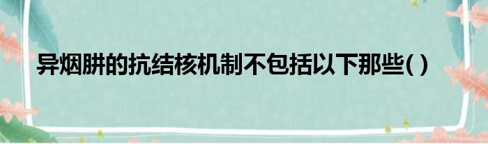 导读 大家好,今天小六子来为大家解答以下的问题,关于异烟肼的抗结核机制不包括以下那些( )这个很多人还不知道,现在让我们一起来看看吧!1、都